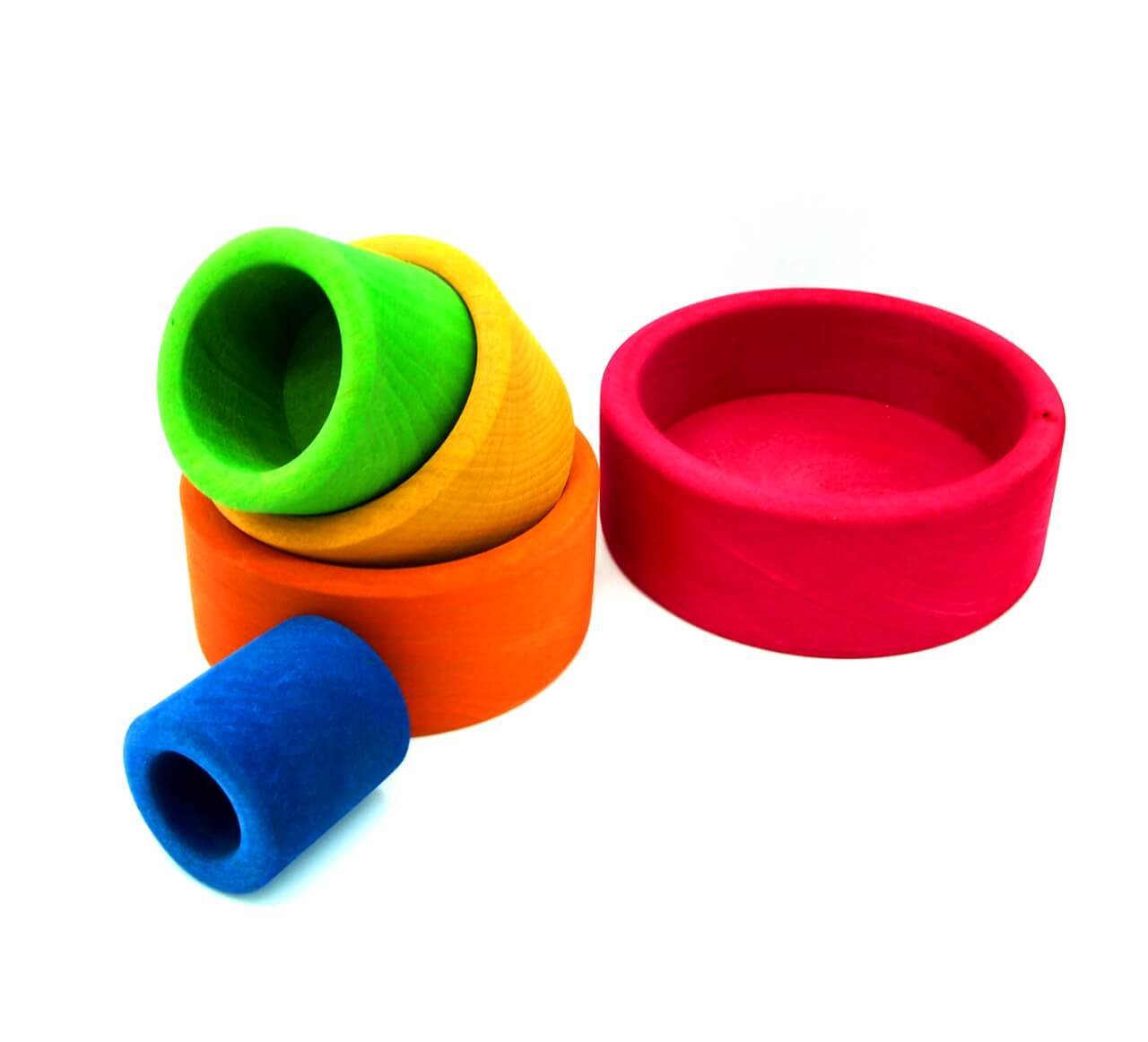 [「器」や「大きさ」を理解する遊び] 積み木として遊んだり、器として遊んだりと、幅広く楽しむことができ、創造性や感性を育みます。