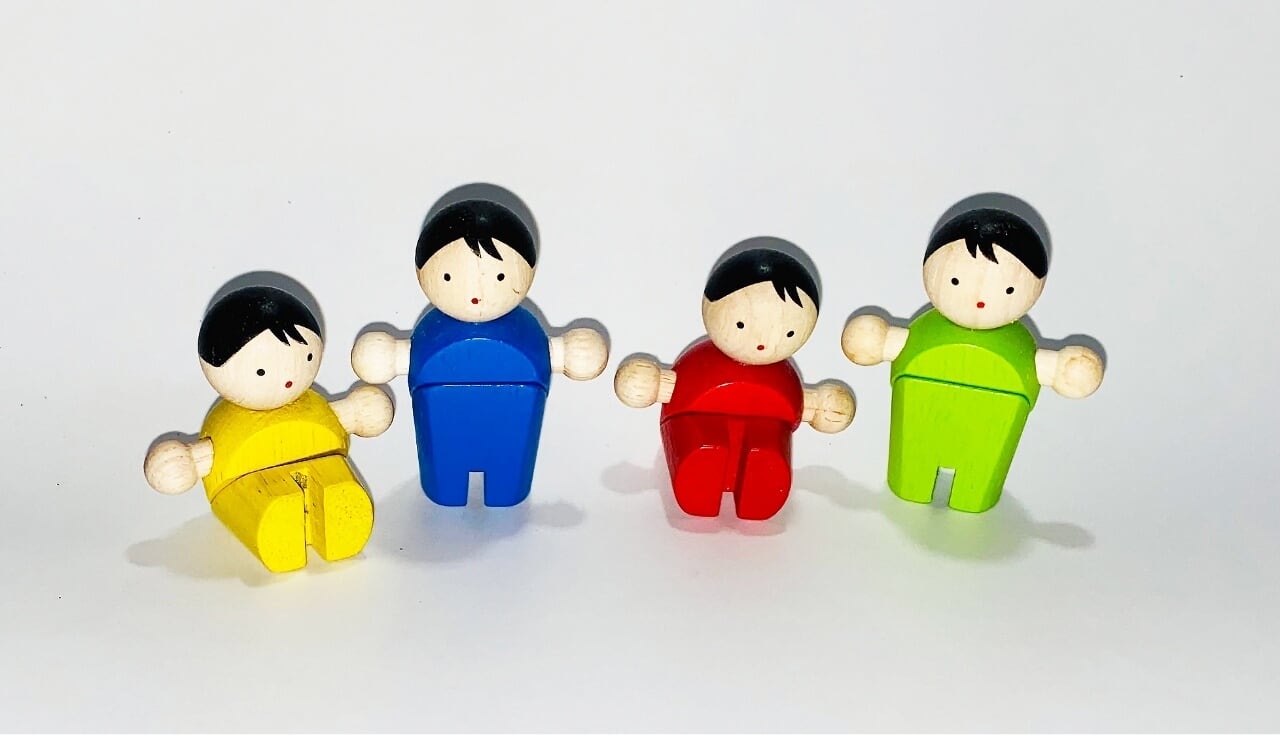 ミニドールの二人が向き合うと、あっという間に何かお話しし始めます。同じパック内の「トーテム」と色がリンクしていますので、一緒に合わせて遊ぶことで子どもたちの想像力がかき立てられます。