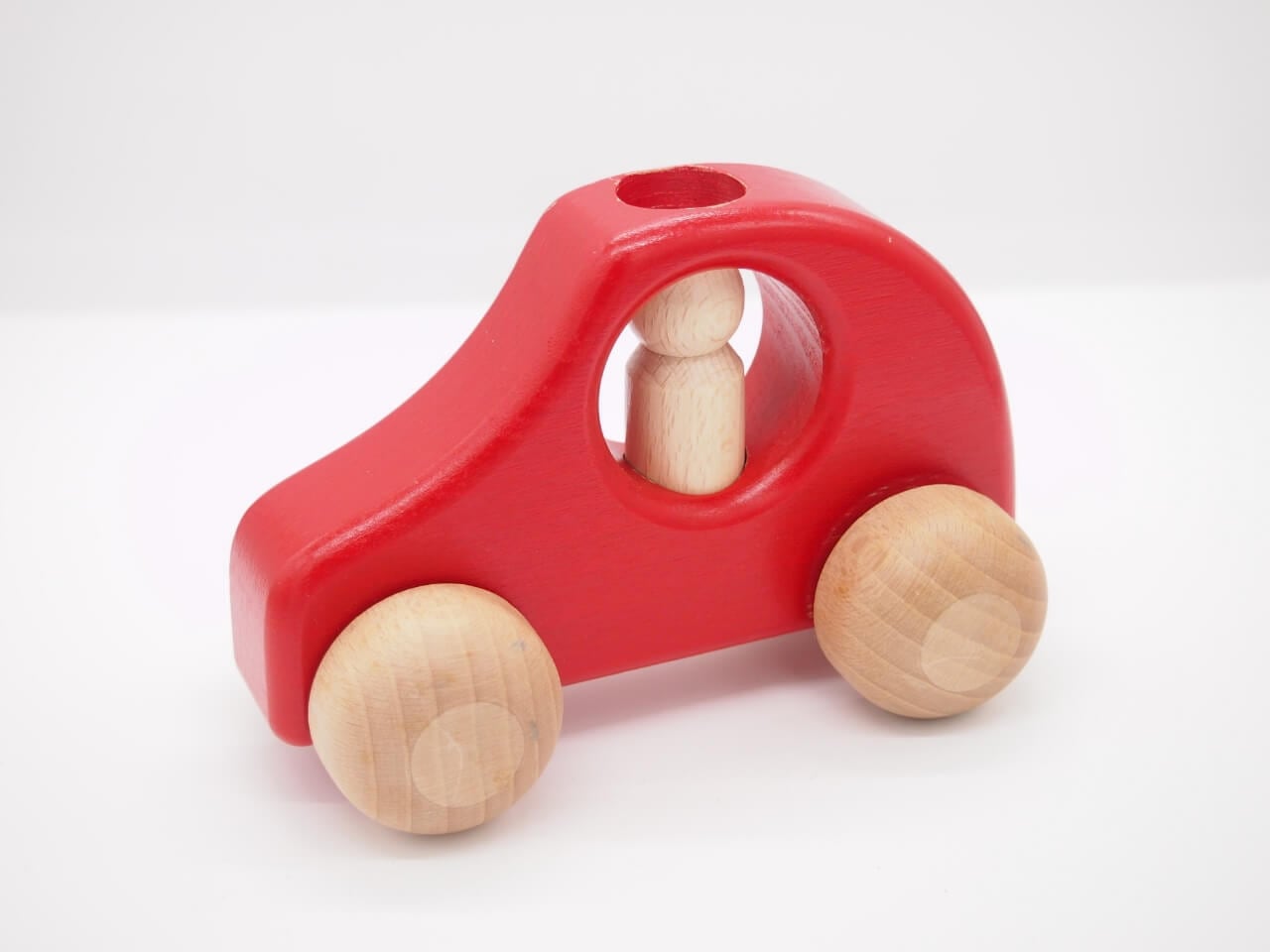 いつの時代も子ども達に人気の乗り物玩具。男の子に限らず女の子であっても、「人形」が有ることで自分と重ねてイメージし、自分が車でお出かけしたことを思い出しながらこの車を動かします。あたたかく丸みのを帯びていて優しい印象ですが、作りはとても頑丈なので、孫の代までずっと大切にできる玩具です。